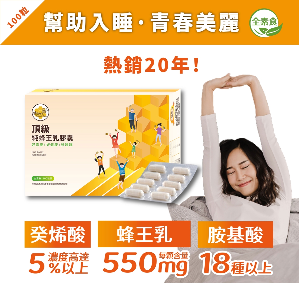 【幫助好眠】頂級三日齡蜂王乳(素食)膠囊100粒盒裝/最新效期2027/10