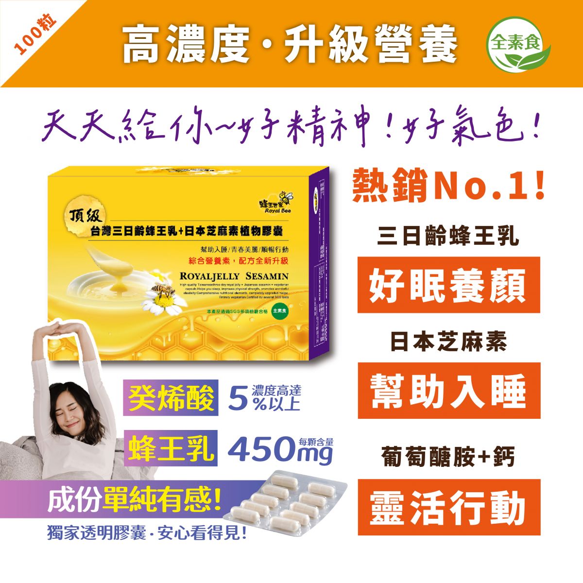 ★台灣頂級三日齡蜂王乳+日本芝麻素+葡萄醣胺(鹽酸鹽)+維生素C+維生素D