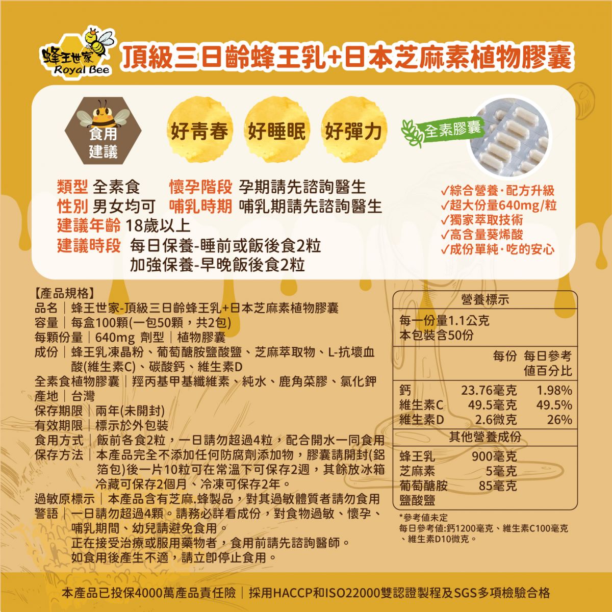 頂級三日齡蜂王乳+日本芝麻素(素食)膠囊